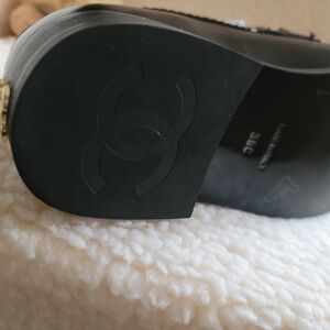 Step into Timeless Elegance with comfort: Chanel made in Italy Black Leather Loafers in European size 38- 7.5 US only have one dust bag, I sold the other.