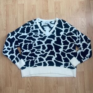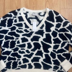 NWT LOFT Black and White Giraffe Print Super Soft Sweater Top Size Large
