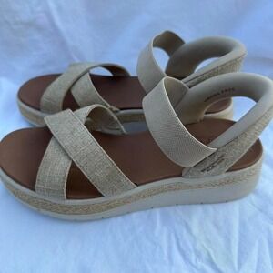 Sketchers Bobs Cream and tan canvas wedge sandals