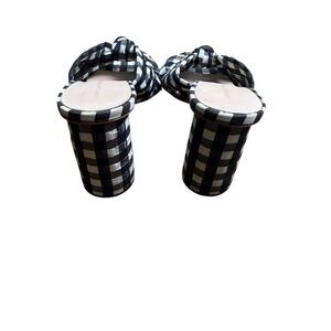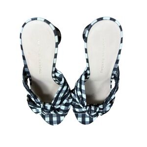 Loeffler Randall Gingham Bow Mule Heels Women’s 8B Black White Block Heel