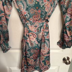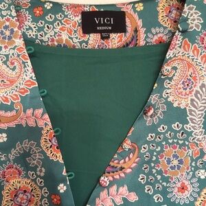 VICI green floral and paisley dress button detail on neck Wedding guest dress