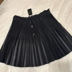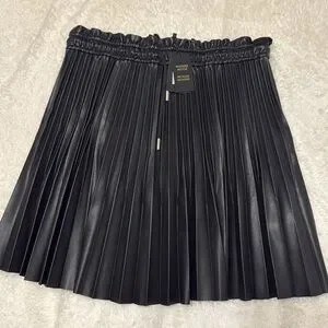 Chic black pleated mini skirt by Maje. Features an elastic waistband with drawstring. Perfect for stylish outings.