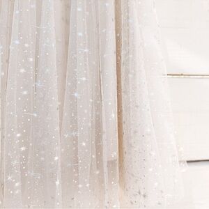 This elegant creamy white tulle skirt with a constellation of sparkly stars. Very stretchy, one size fits XS-medium.
