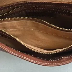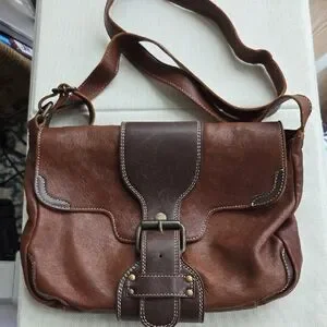 Stylish brown leather bag, perfect for everyday use. Durable and versatile, ideal for carrying essentials.2 zipper pockets and buckle closure. Used very few times. Leather is super soft and in great condition