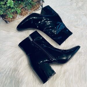 The Kooples Black Patent Leather Block Heel Ankle Boots