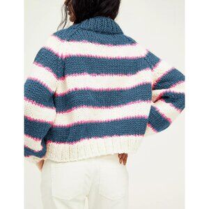 Striped detail, turtle-neckline, long-sleeve, ribbed knit trim, slouchy, relaxed fit colorful knitwear