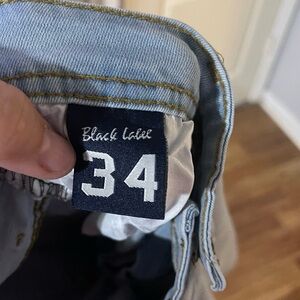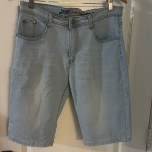 Stylish sky blue jean shorts. Ideal for casual outings. Features front and back pockets.