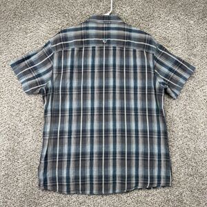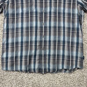 Kuhl Shirt Men's XL Blue Plaid Short Sleeve Button Up Linen Tapered Fit Hiking