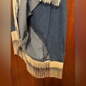 Vintage Midi Apache Denim Jean Skirt Ombre Fringe NWT Wanted Brand
