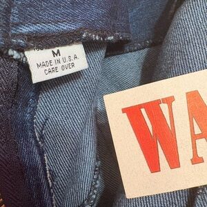 NWT Vintage denim pencil like midi skirt with ombré fringe. Size Medium. Measures approximate waist across 13.5”, length including fringe 37”. Fringe by itself about 8.5”. The skirt has a large angle split across the skirt in the middle front. Original tag states garment is hand crafted in the USA.