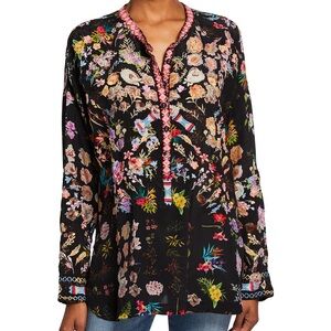 EUC - Johnny Was Brigitte floral-print and embroidered silk tunic blouse in a vibrant multi-colored pattern. I originally purchased this at Bloomingdale’s.