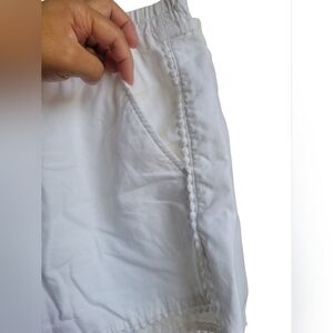 Stylish white shorts with elastic waistband. Perfect for casual wear.100%cotton pre-owned Sz L good condition small wear marks on the waistband