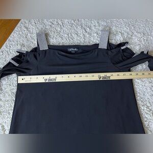 Women’s Medium Bedazzled Black Open Shoulder Top