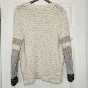 Victoria's Secret cable knit sweater, slouchy style fit with it dropping lower in the back. Cream with Claolorblock sleeve detail, wool/alpaca blend.