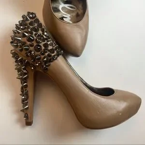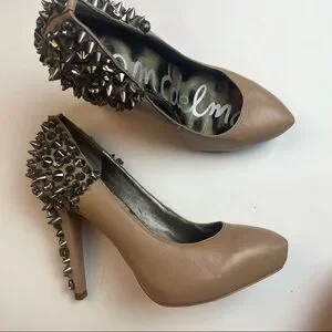 Sam Edelman Nude Spiked Leather Heels Size 6