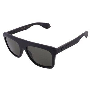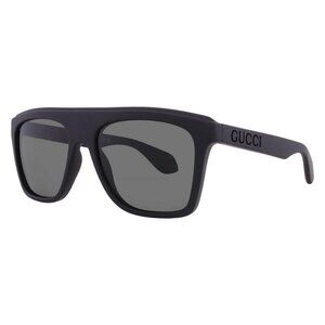 Gucci Sunglasses.. Color code: 001. Shape: Browline. Lens Width: 57 mm. Lens Bridge: 18 mm. Arm Length: 145 mm. 100% UV protection. Non-Polarized. Frame Material: Recycled Acetate. Frame Color: Black. Lenses Type: Grey. Rim Style: Full-Rim.. Gucci Grey Browline Men's Sunglasses GG1570S 001 57.