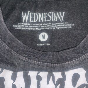 Juniors size Medium ,“WEDNESDAY” charcoal gray & white baby doll tee EUC