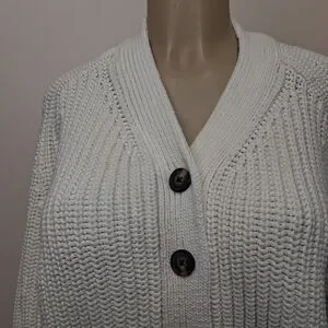 Everlane Womens Chunky Knit Cardigan Sweater White Boho Fisherman Large Coastal
