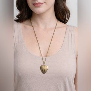 Beautiful vintage gold-tone heart pendant necklace featuring delicate cut-out detailing and a classic chain. Timeless and elegant, this piece adds a romantic touch to both casual and dressy looks.