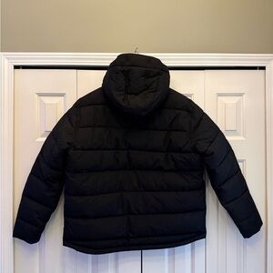 Sherpa-lined upper body and hood for comfort; Uses blown-in insulation for extra warmth.”