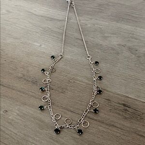 This elegant necklace features a delicate silver chain adorned with striking green gemstones. Perfect for adding a touch of sophistication to any outfit.