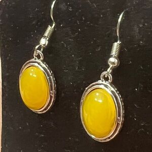 Fashion Jewelry Ladys Earrings A Mustard Gold Color With Silver Plating, Stylish And Has The Look Of Southwestern.