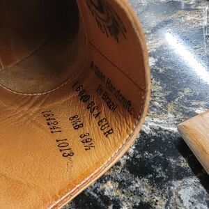 Beautiful Charlie 1 Horse distressed tan/caramel burnished stack-heel mules.