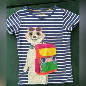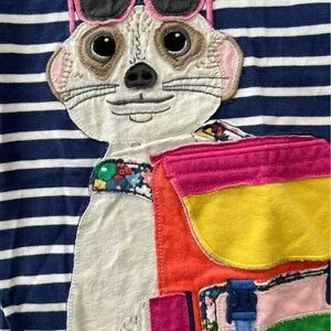 Fun meerkat design with sunglasses and backpack. Some fading from wash and wear.