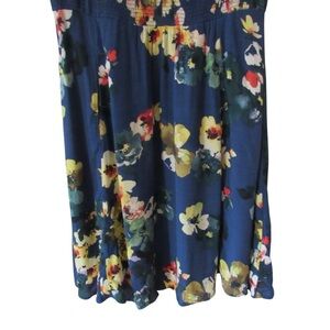 Maeve Anthropologie Evaline Blue Yellow Floral Dress Small Cap Sleeves Smocked