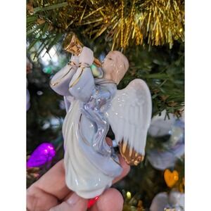 Measures 3 3/4" tall. Beautiful blue angels, play trumpets, harp,