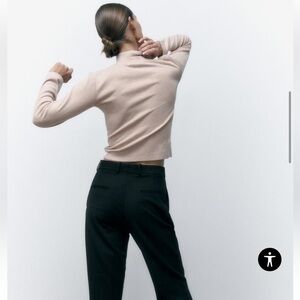 Zara Soft Mock Neck Beige Ivory Tan Marl Longe Sleeve Top Women’s Size Large