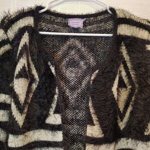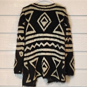 Michelle Nicole Women's Small Black White Shaggy Open Cardigan Soft Cozy Aztec