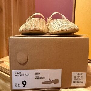 J. Crew Tan Mesh Flats with Gold Details