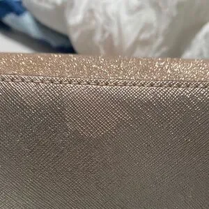 Elegant rose gold purse with a shimmering finish. Perfect for adding glamour to any outfit. Has some wear on bottom as pictured. Also missing optional crossbody strap. Offers welcome!
