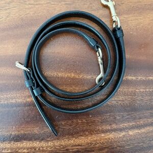COACH leather tote with a center zip compartment, snap closure, fabric lining, double handles (8.5" drop), and a detachable crossbody strap (19.5" drop). Made from double-face leather with gold/imitation gold hardware, it measures approximately 13" (L) x 9.75" (H) x 5.5" (W) BLACK. Designed for shoulder or crossbody wear. For Reference I did measure a 15" MacBook and it fits it tightly, Fits a iPad Pro Comfortable. Normal Wear. Marker Stain on the left (picture attached).