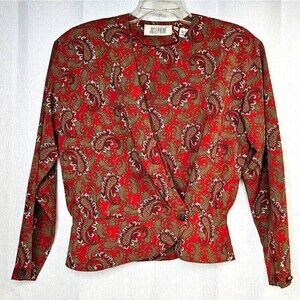 Vintage Josephine Paisley Wrap Front Fitted Waist Professional CareerWear Blouse