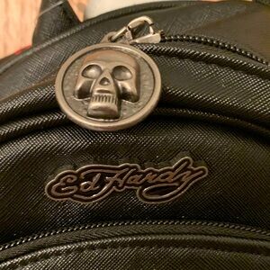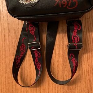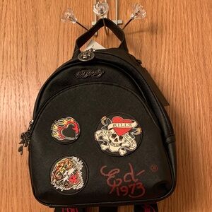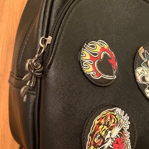 Ed Hardy Black Backpack with Bold Patches Fully adjustable Straps Vegan