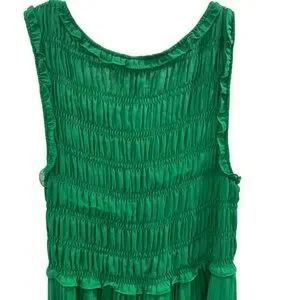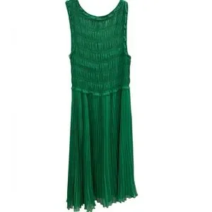 Charming green sleeveless dress perfect for any occasion. Features a stylish pleated design for a playful look.