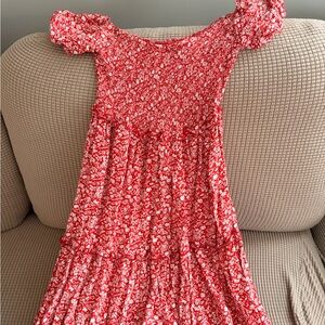 Lovely red maxi dress with a smocked bodice and puff sleeves