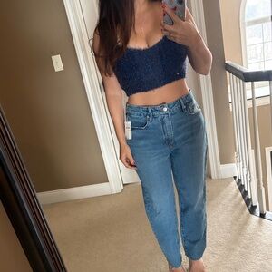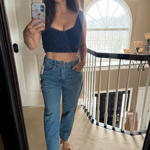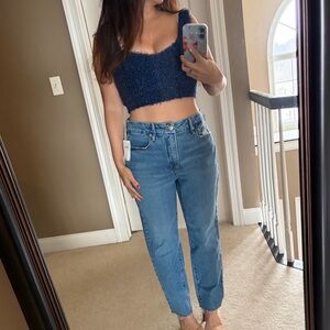 Good American indigo straight leg distressed jeans Jean denim soft size 4