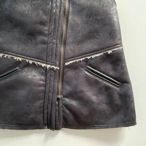 Sanctuary Faux Suede Sherpa Vest SzM Black Zip Up Western Boho 70s Ranch Cowgirl