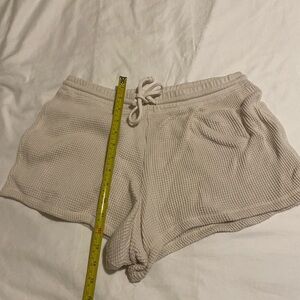 Stylish off-white shorts with a textured knit. Ideal for relaxed outings. Also selling matching top.