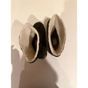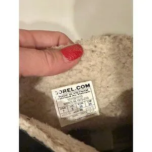 Sorel Glacy Black Suede Waterproof Winter Boots Sz 7 Sherpa Lined Outdoor NL1975The Sorel Glacy Black Suede Waterproof Winter Boots in size 7 are a stylish and functional choice for cold weather. Featuring a round toe shape, pull-on closure, and sherpa lining for added warmth, these mid-calf boots with a low heel are perfect for casual occasions and outdoor activities. The waterproof suede fabric and rubber outsole make them ideal for winter season, while the solid black color and classic design make them versatile for any wardrobe. Made by Sorel, a trusted brand in footwear, these boots are a durable and fashionable option for women looking to stay cozy and chic in winter.