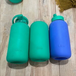 Set of 3 Bink 27oz Day Water Bottle Flip Cap Emerald Blue FLAWED