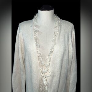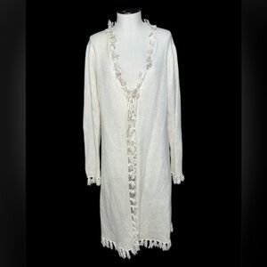 Long duster cardigan tassel fringe ivory hippie boho fall western small preppy