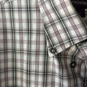 Nordstrom shirt men's button up dressy career size Large White gray plaid