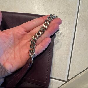 Chic leather clutch with a chain strap. Perfect for evening outings.