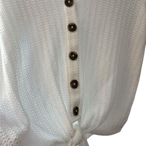 Sanctuary White Textured Button Front Tie Top – Size L – NWT