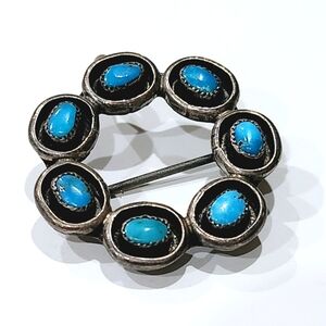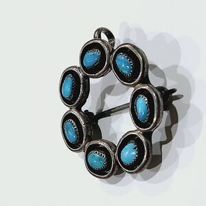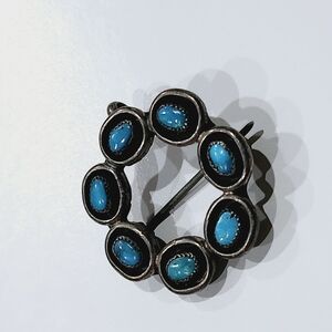 Zuni Turquoise Petit Point and Silver Pin, Pendant 1930s- 1940s