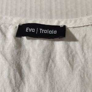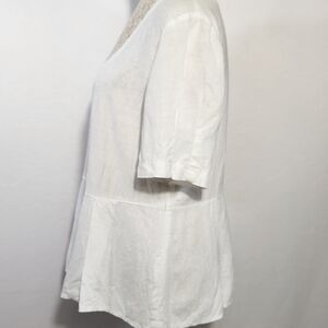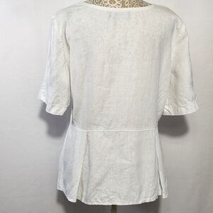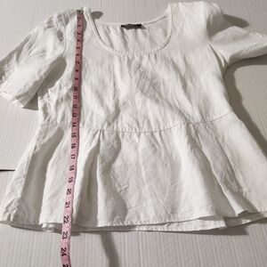Eva Tralala 100% Crisp Linen Top White Short Sleeve Pleat Peplum Scoop Neck Side Zip Boho Hippie Countries Made in Paris France Size Small Faint Blemish Left Pleat No Size Tag Over All In Gently Pre-Owned Excellent Condition Reasonable Offers Welcome